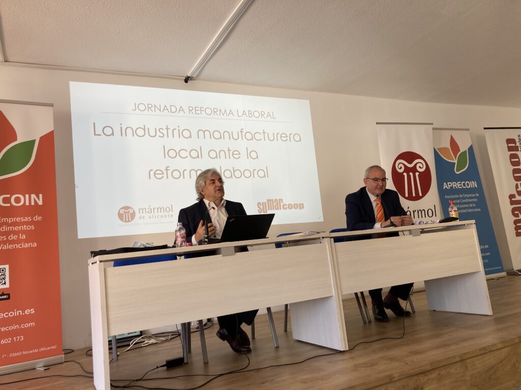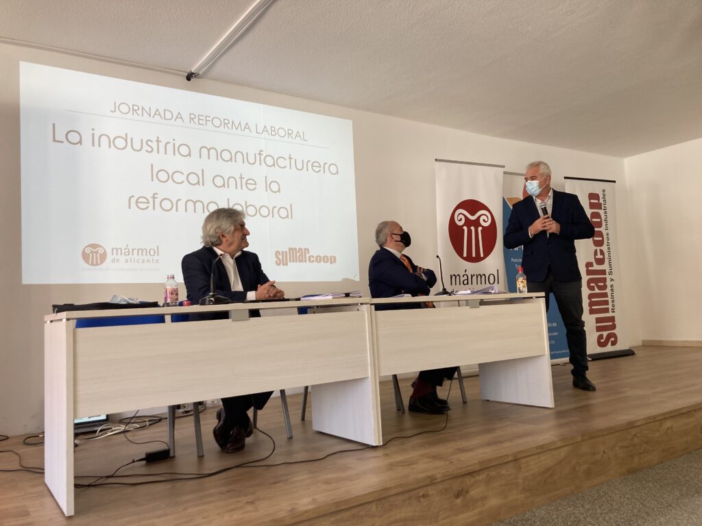El pasado martes, 22 de febrero de 2022, se celebró en la Casa de la Cultura de Novelda la Jornada sobre la Reforma Laboral «La industria manufacturera local ante la reforma laboral» organizada por Mármol de Alicante, Asociación de la Comunidad Valenciana, junto con APRECOIN, Asociación de empresas de Especias, Condimentos e Infusiones de la Comunidad Valenciana y SUMARCOOP.