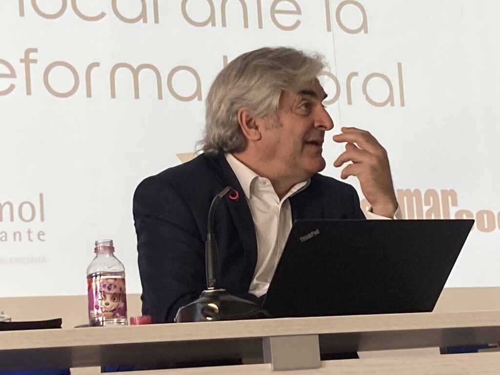 La conferencia fue realizada por Javier San Martín, socio fundador del Bufete CasadeLey, abogado laborista de reconocido prestigio, doctor en derecho y miembro de la Real Academia de Jurisprudencia y Legislación. El acto fue moderado por Javier Navarro, socio director de los despachos Sala Cola y Sala&Ribera, abogado laborista, letrado en varias patronales y negociador de convenios colectivos sectoriales del mármol y las especias.